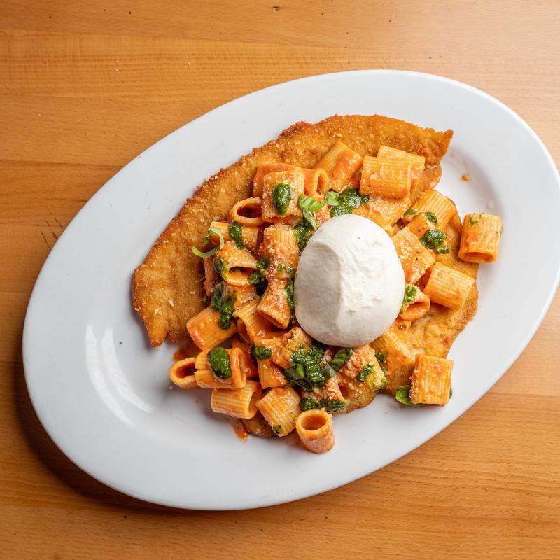 Add: Chicken +$6.00 | Shrimp +$8.00 | Salmon +$9.00 | Steak +$10.00 • NOTES: Olives may contain pits | All pasta garnished with Parmigiano. Gluten-free or whole wheat pasta: additional $2