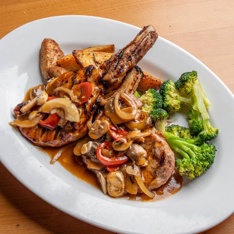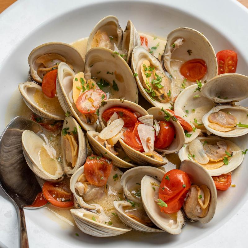 Entree – Clams, Mussels, Shrimp, Salmon, linguini, garlic white wine & basil.